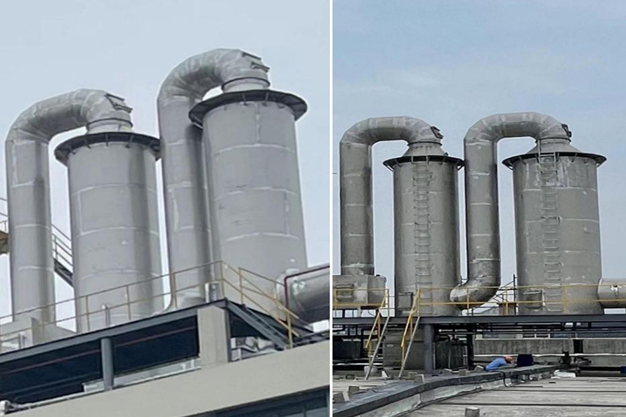 在磷化工、石墨、有色冶煉等行業,生產排放的飽和濕煙氣與低溫環境空氣接觸時,在煙氣溫度下降過程中,煙氣中的水蒸氣過飽和凝結,凝結水滴折射和散射光線,使煙羽呈白色或灰色,稱為濕煙羽。由于冬季溫度較低,相關問題的環保投訴較多。那么,有哪些種煙氣脫白技術?各種煙氣脫白的技術原理是怎樣的?1、冷凝相變煙氣脫白技術冷凝相變煙氣脫白原理為:煙氣經濕法脫硫后,含濕量上升,為B狀態,進入換熱消霧模塊后。干態空氣A入換熱消霧模塊兩者交換后,A溫度上升,含濕量不變,相對濕度降低,處于C。B煙氣,溫度降低,相對濕度不變,含濕量降低,液滴析出,轉為D。D和受熱C流出換熱消零模塊,在氣室中混合,使D溫度下降,濕度降低:C溫度上升,相對濕度上升,兩種狀態的煙氣混合,最終達到F狀態,AF連線始終處于不飽和狀態,因此,不會出現可見白煙或霧氣團??梢钥闯觯淠祜L技術是煙氣脫白的較好技術路線,特別是在北方寒冷地區,單純的煙氣再熱很難消除煙囪白煙。2、低電耗離子束煙氣脫白技術低電耗離子束煙氣脫白原理為:高速電子射流擊穿煙氣,產生正負離子體基團,煙氣中氣溶膠、飽和水滴、微小顆粒物在離子束的撞擊下,不斷發生凝聚效應,顆粒物和水滴快速凝聚成團,在重力作用下,落到離子束除變器底部流入脫硫塔或廢水收集池,達到降解顆粒物,氣溶膠和水零的目的。廢氣中的氨氧化物,由高速電子束提供能量,快速與氨氣發生還原反應,生成副產物水。低電耗離子束煙氣脫白優點:1.放電產生的離子體中,電子能量高,幾乎可以和所有的惡臭氣體分子作用。2.反應快,不受氣速限制。采用防腐蝕材料。3.用電成本低,操作極為簡單,無需派專職人員看守,基本不占用人工費。4.設備啟動、停止十分迅速,隨用隨開,不受氣溫的影響。